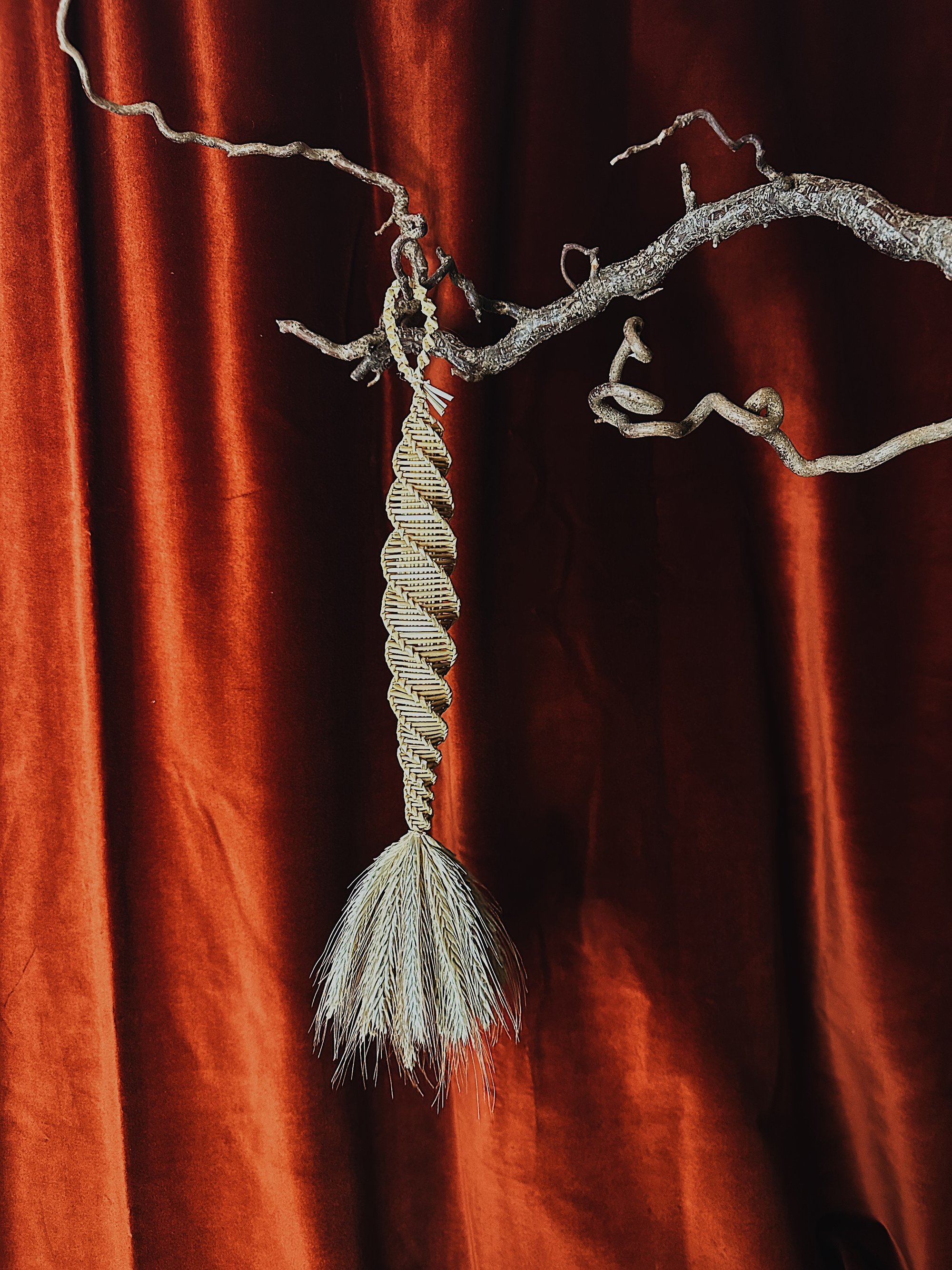 A Suffolk Spiral made with shiny rye straw
