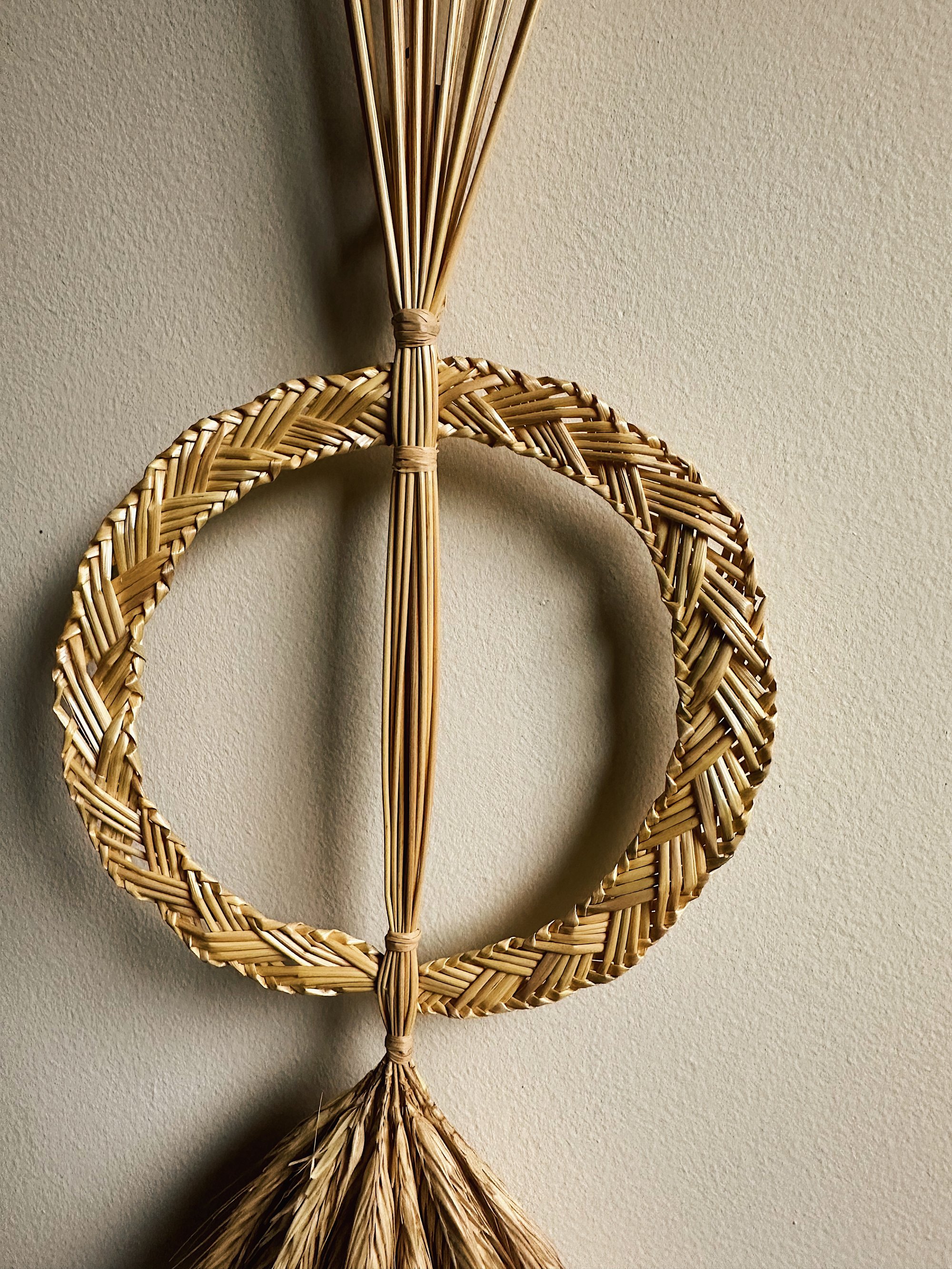 Approx 32cm tall, 13cm at widest point. Wheat straw is a natural material, so size and colour may vary